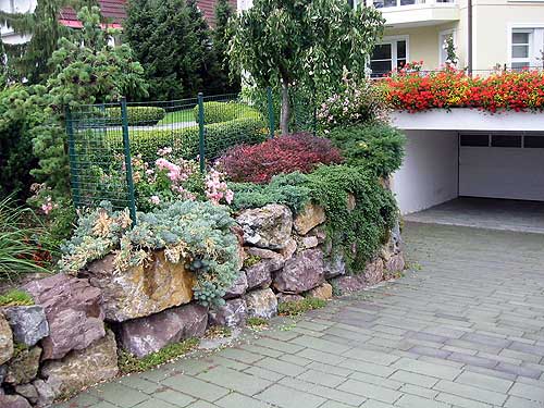 Um ein ästhetisches Gesamtbild Ihrer Wege und Terrassen zu erreichen, gibt es verschiedene Möglichkeiten: Pflaster-, Beton- und Natursteinplatten sowie Holz-, aber auch Stützmauern aus Kalkbruchstein sind ein schönes Detail im Garten und schaffen bei unterschiedlichen Niveaus, ebene Terrassen.
