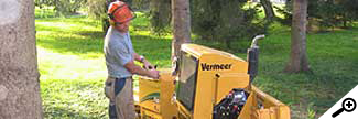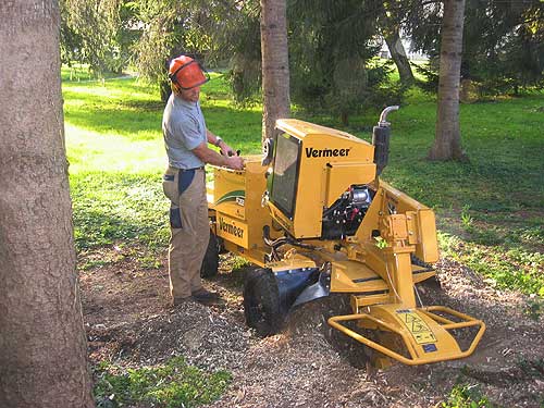 Muss ein Baum gerodet werden, bleibt meist ein störender Wurzelstock. Mit unseren 2 Wurzelstockfräsen, mit einer Mindestdurchfahrtsbreite von 89 cm, erreichen wir die meisten Wurzelstöcke.